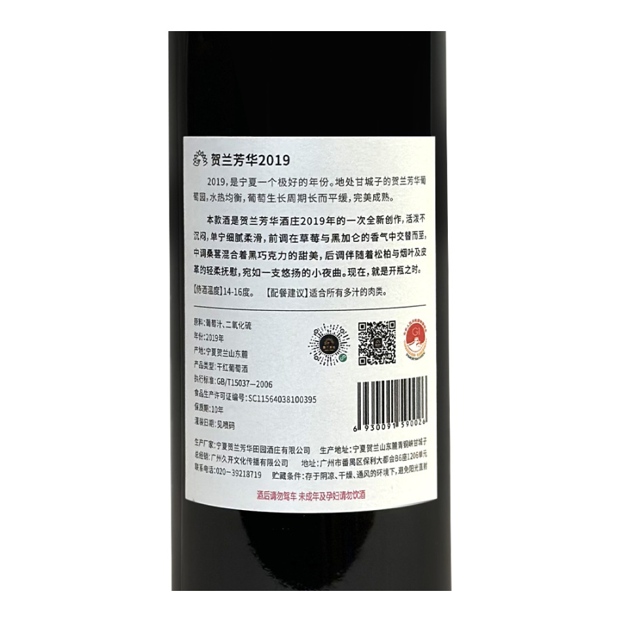 2019年贺兰芳华酒庄195黑标红葡萄酒