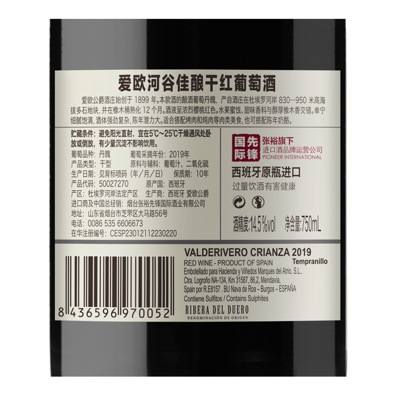 2019年爱欧河谷佳酿干红葡萄酒 西班牙-杜埃罗河岸 丹魄 品质服务 品质服务