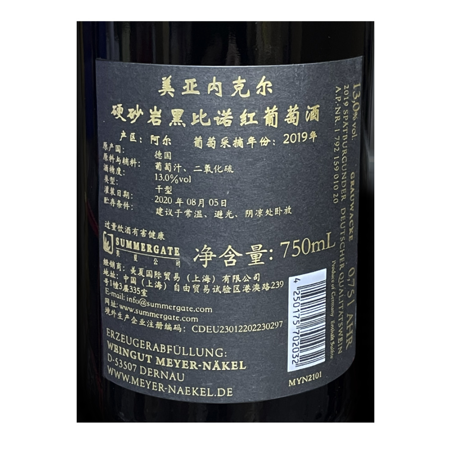 2019年美亚内克尔硬砂岩黑比诺红葡萄酒 美亚内克尔酒庄 德国-阿尔 黑皮诺 品质服务 品质服务