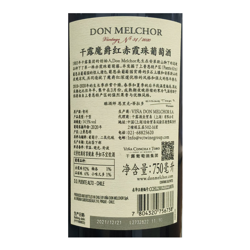推荐干露酒庄是智利著名的葡萄酒业集团,多次荣获世界最畅销葡萄酒品牌称号;在《品牌频道》评选的2004年拉美地区十大最知名品牌中名列第5位,成为智利仅有的入围的知名品牌;魔爵是干露集团旗下明星酒款之一,其多个年份均登上了詹姆斯·萨克林(JS)和《葡萄酒观察家》(WS)的年度百大葡萄酒榜单;这款酒香气层次鲜明,口感多汁,风味甜美而凝练,余韵则相对含蓄内敛,烘烤橡木味道久久萦绕。