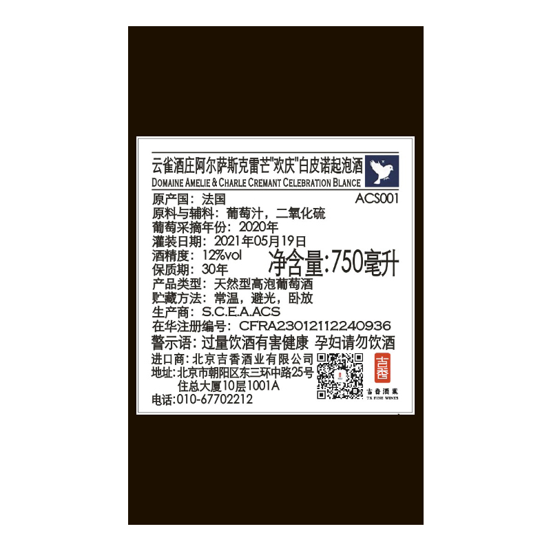 2020年云雀酒庄阿尔萨斯克雷芒“欢庆”白皮诺起泡酒 阿尔萨斯 白皮诺2 品质服务 品质服务