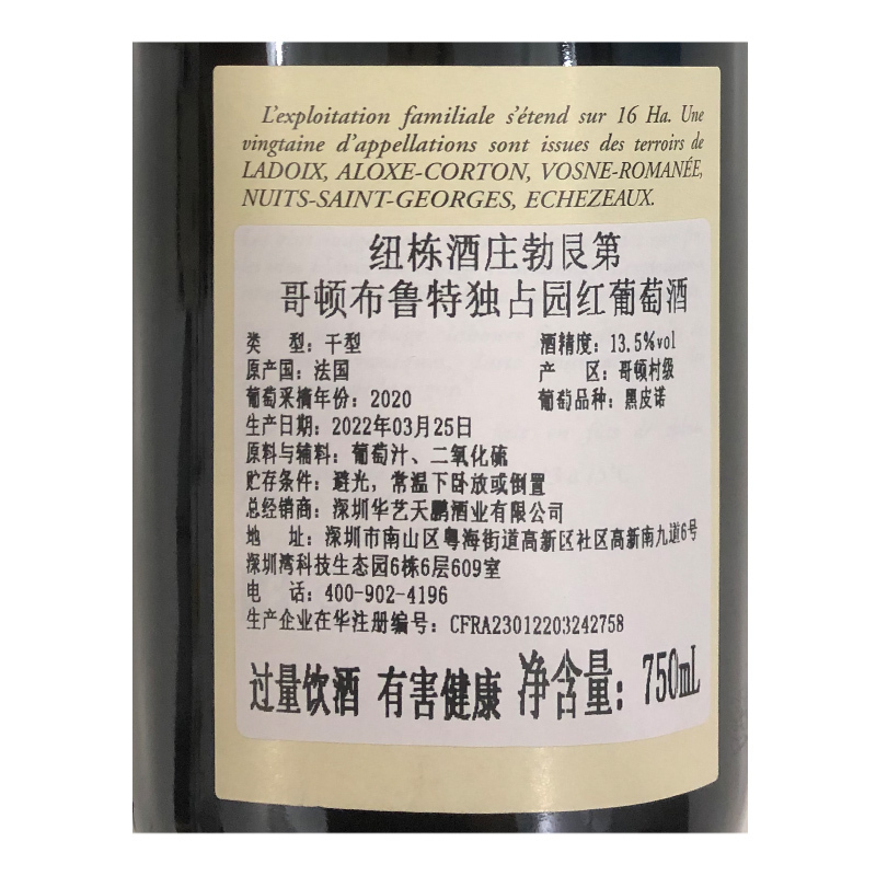 2020年纽栋酒庄勃艮第哥顿布鲁特独占园红葡萄酒