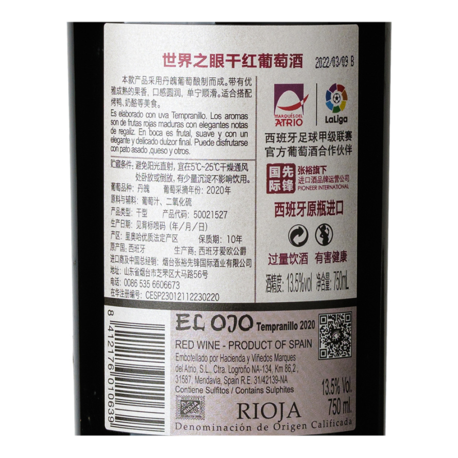 2020年世界之眼干红葡萄酒 爱欧公爵酒庄 西班牙里奥哈 丹魄 品质服务 品质服务