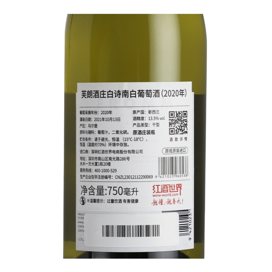2020年芙朗酒庄白诗南白葡萄酒