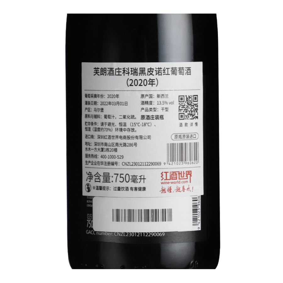 2020年芙朗酒庄科瑞黑皮诺红葡萄酒 2020年芙朗酒庄科瑞黑皮诺红葡萄酒 2020年芙朗酒庄科瑞黑皮诺红葡萄酒 芙朗酒庄 新西兰-马尔堡 品质服务 品质服务