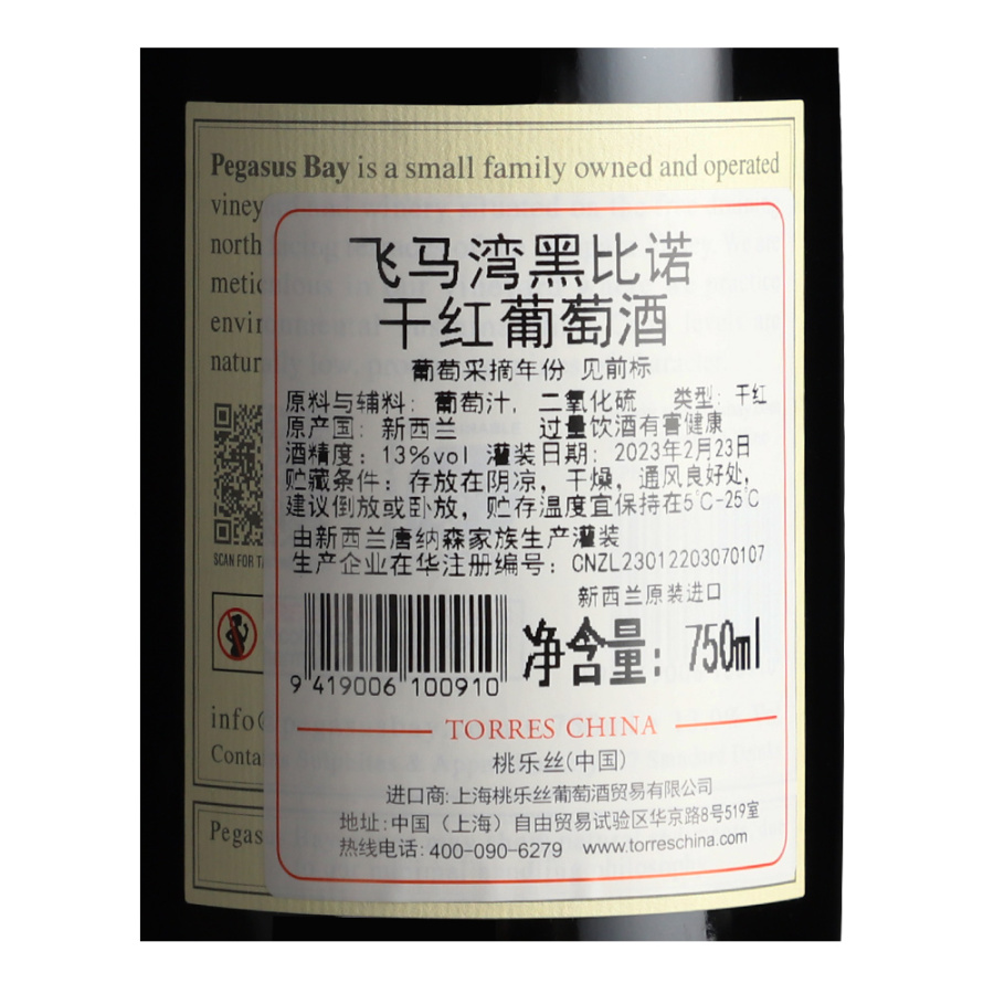 2021年飞马湾黑比诺干红葡萄酒 新西兰-坎特伯雷 黑皮诺 品质服务 品质服务