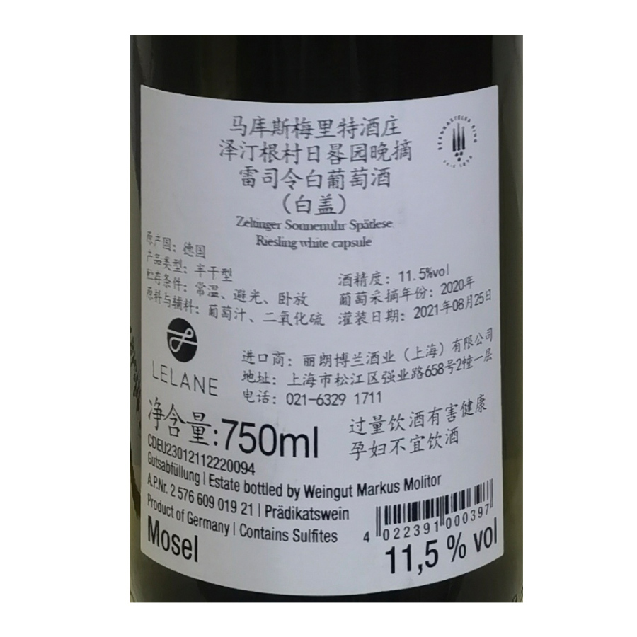 2020年马库斯梅里特酒庄泽汀根村日晷园晚摘雷司令白葡萄酒(白盖) 玛斯莫丽酒庄 摩泽尔 雷司令 品质服务 品质服务