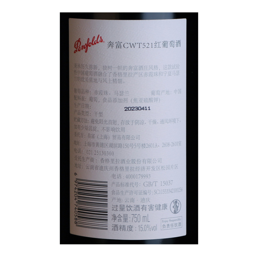 2021年奔富CWT521红葡萄酒 奔富酒庄 香格里拉 宁夏贺兰山东麓 赤霞珠 品质服务 品质服务