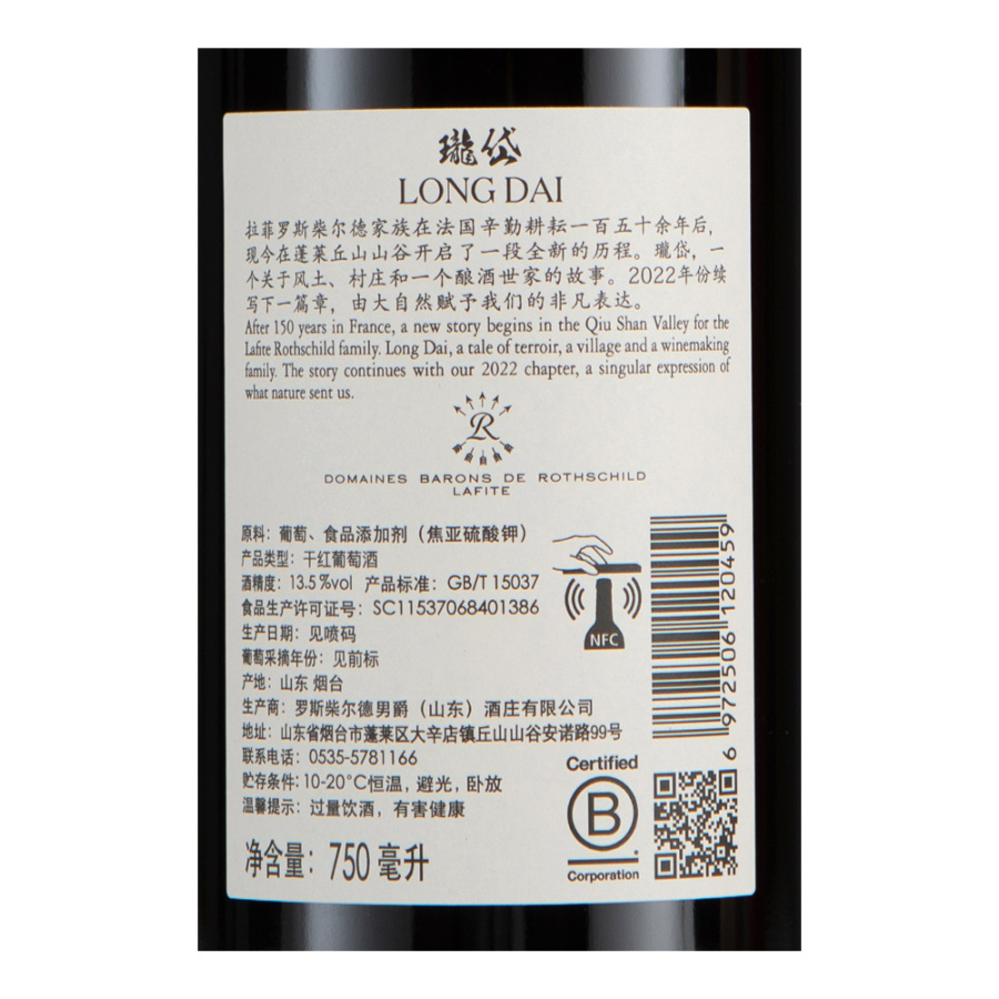 这是一款来自山东蓬莱丘山山谷产区的红葡萄酒,是拉菲罗斯柴尔德男爵酒业公司旗下瓏岱酒庄的正牌酒。“瓏岱”二字承载着罗斯柴尔德家族的希冀,寓意着酒庄所产葡萄酒融合了人们的悉心耕耘与自然的卓越风土,是现代文明与中国传统的融会贯通,更是祖辈经验与前卫精神的结合。2022年瓏岱酒庄红葡萄酒集轻盈、清新与精致于一体,紫罗兰、桑葚和蓝莓的果香徐徐舒展,交织着白胡椒和矿物气息,酒体适中,风味十足,余韵绵长而多汁,尽显雅致。