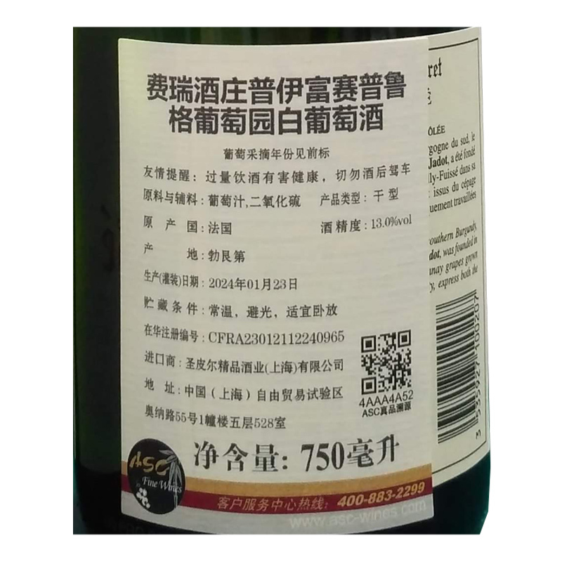 法国勃艮第-普伊-富赛 霞多丽 品质服务 品质服务