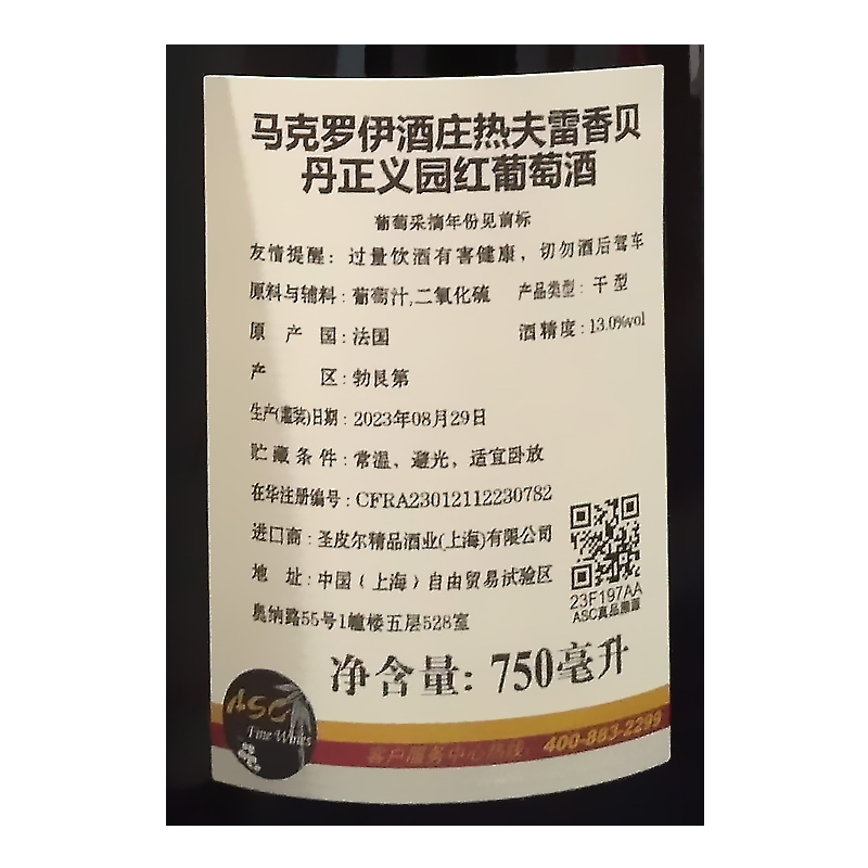 2022年马克罗伊酒庄热夫雷香贝丹正义园红葡萄酒 法国勃艮第-热夫雷-香贝丹 黑皮诺 品质服务 品质服务