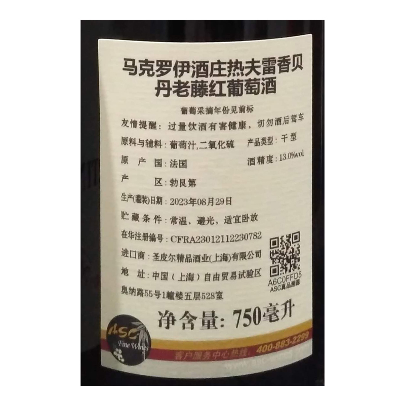 2022年马克罗伊酒庄热夫雷香贝丹老藤红葡萄酒 法国勃艮第-热夫雷-香贝丹 黑皮诺 品质服务 品质服务