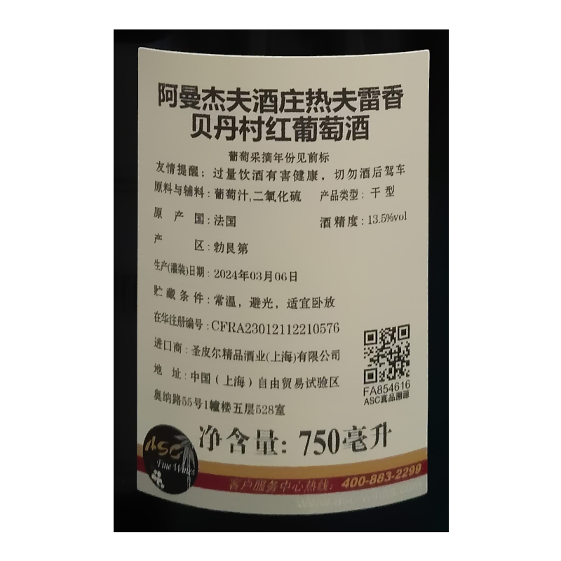 2022年阿曼杰夫酒庄热夫雷香贝丹村红葡萄酒