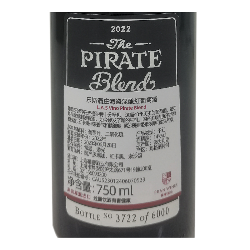 2022年乐斯酒庄海盗混酿红葡萄酒