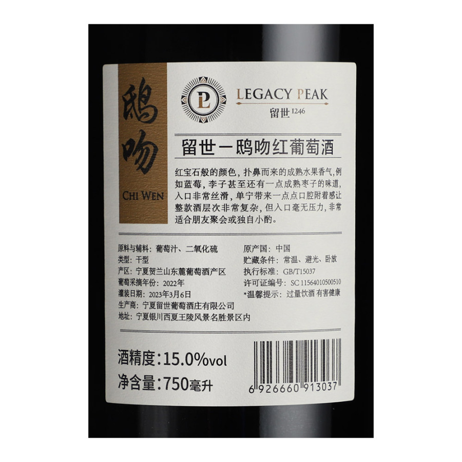2022年留世鸱吻干红葡萄酒 留世酒庄 贺兰山东麓 品质服务 品质服务