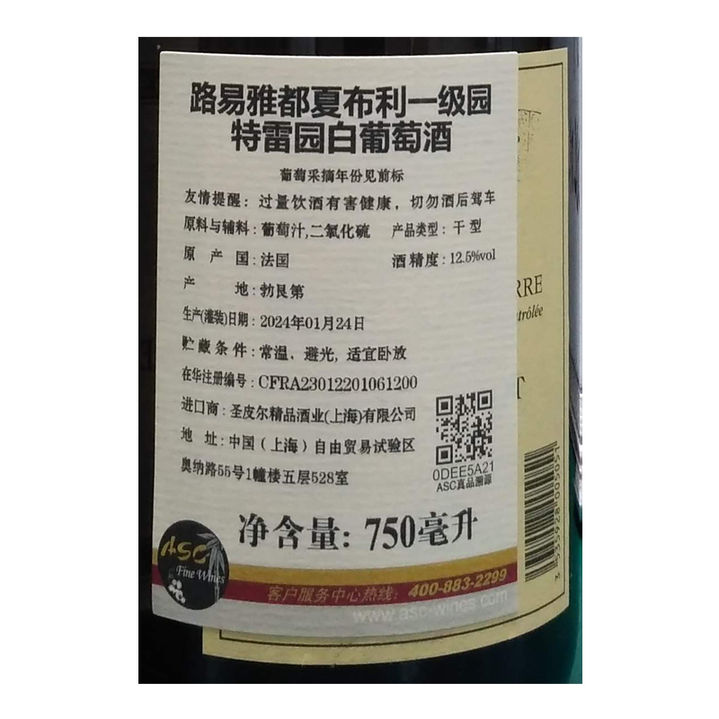 2022年路易雅都夏布利一级园特雷园白葡萄酒