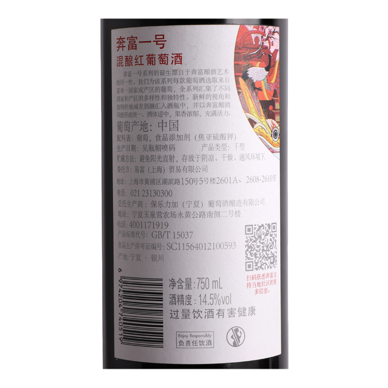 2022年9月,奔富推出全新创意潮流葡萄酒系列——奔富一号(One by Penfolds),奔富一号从全球多个国家和地区精选酿酒果实,将风土的多样性和独特性汇集到此酒款系列中,这款酒正是该系列的中国酒款,成酒酒体适中,果香充沛,活力洋溢。