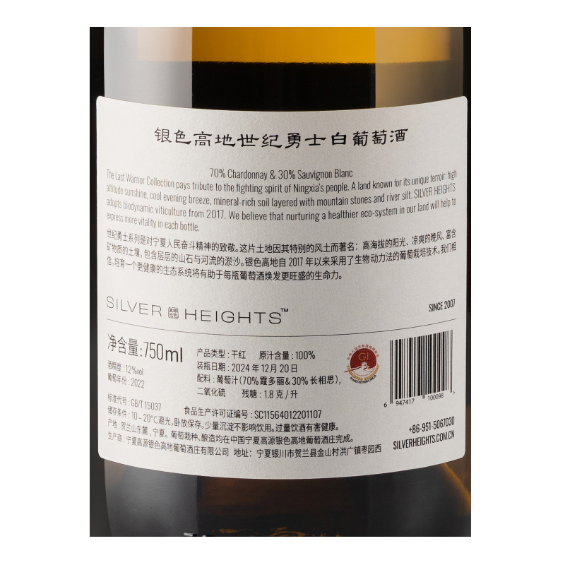 2022年银色高地世纪勇士白葡萄酒 宁夏贺兰山东麓 霞多丽 长相思2 品质服务 品质服务