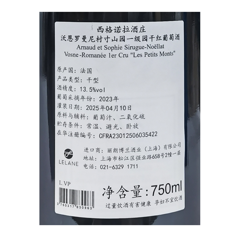 2023年西格诺拉酒庄沃恩罗曼尼村寸山园一级园干红葡萄酒