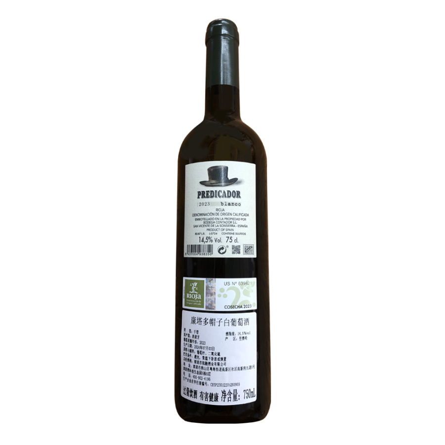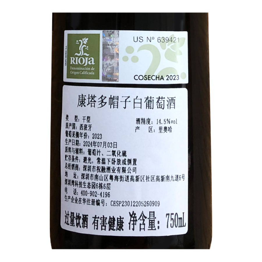 2023年康塔多帽子白葡萄酒 西班牙里奥哈 维奥娜 玛尔维萨1 白歌海娜2 品质服务 品质服务