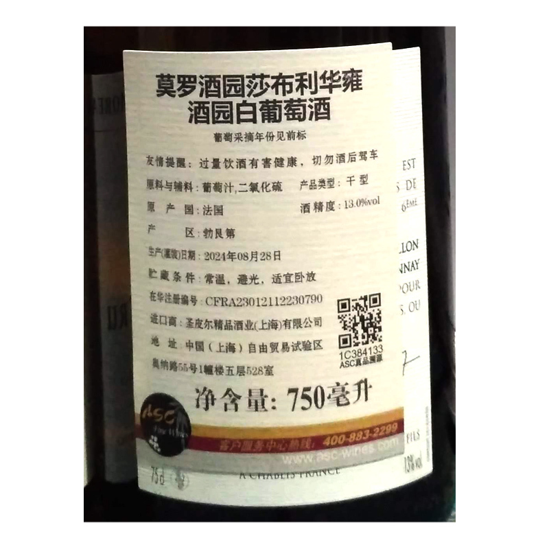 2023年莫罗酒园莎布利华雍酒园白葡萄酒 法国勃艮第-夏布利 霞多丽 品质服务 品质服务