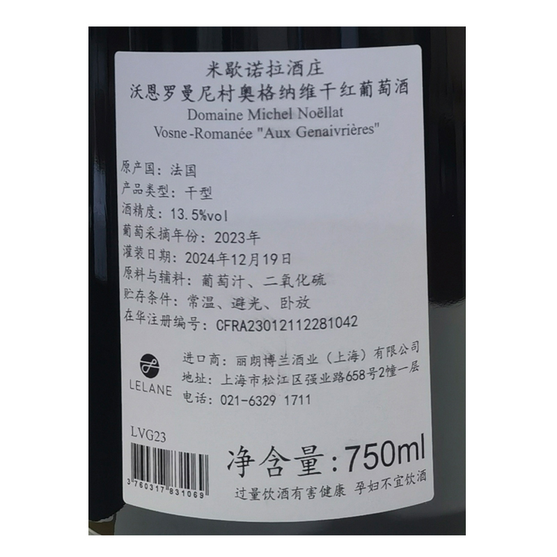 2023年米歇诺拉酒庄沃恩罗曼尼村奥格纳维干红葡萄酒