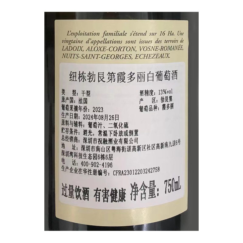 2023年纽栋勃艮第霞多丽白葡萄酒