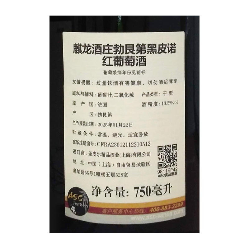 2023年麒龙酒庄勃艮第黑皮诺红葡萄酒 法国勃艮第 黑皮诺 品质服务 品质服务