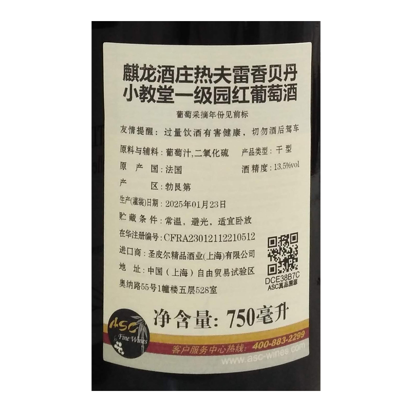 2023年麒龙酒庄热夫雷香贝丹小教堂一级园红葡萄酒