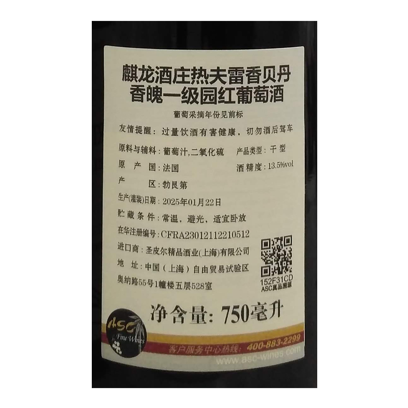 2023年麒龙酒庄热夫雷香贝丹香魄一级园红葡萄酒