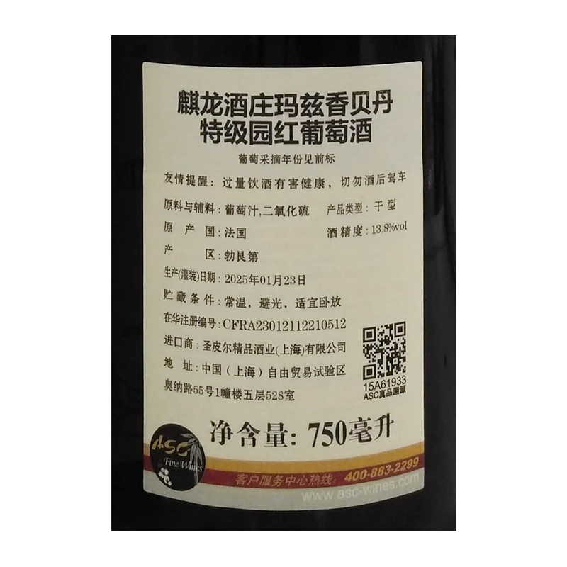2023年麒龙酒庄玛兹香贝丹特级园红葡萄酒