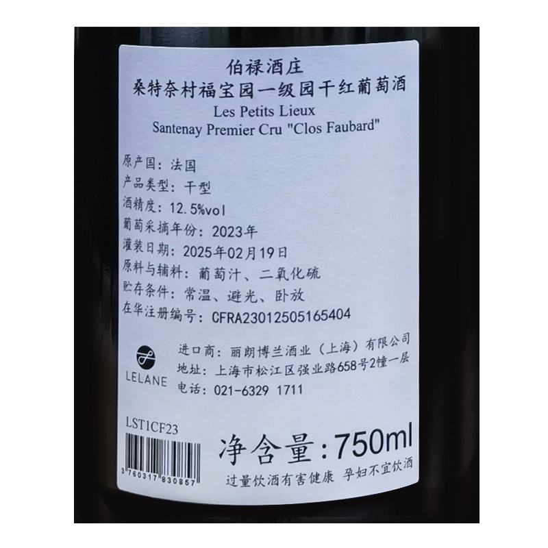 2023年伯禄酒庄桑特奈村福宝园一级园干红葡萄酒