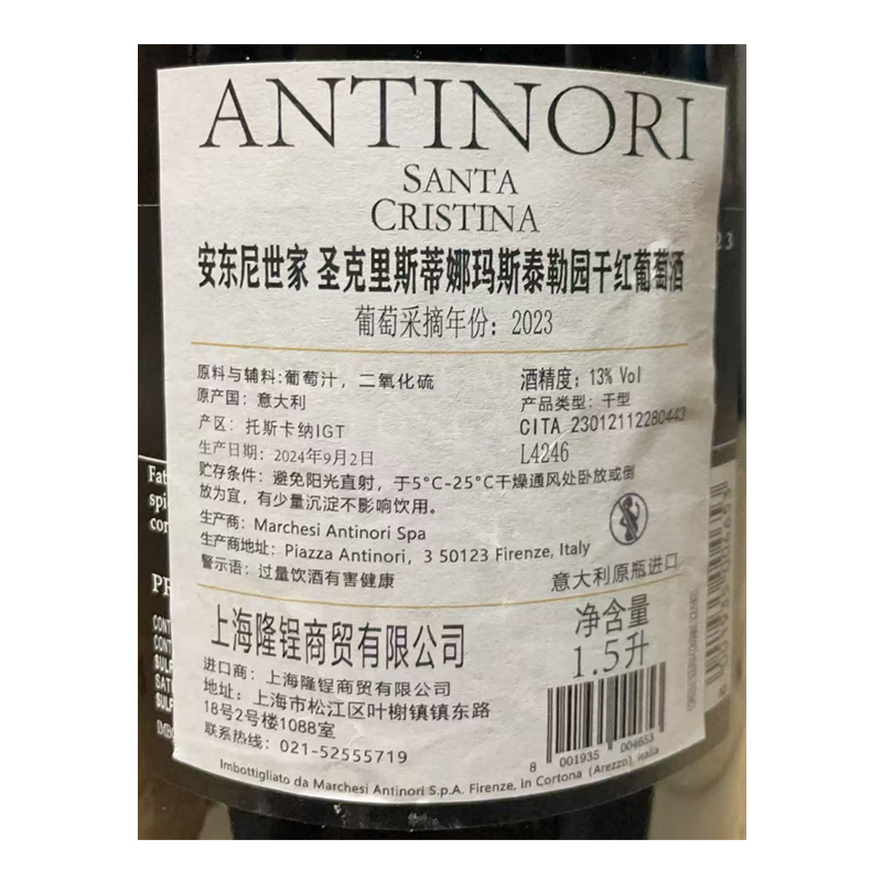 2023年安东尼世家圣克里斯蒂娜玛斯泰勒园干红葡萄酒(1.5L大瓶装)
