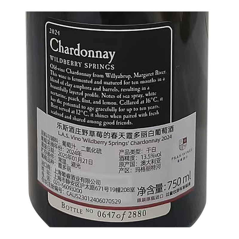 2024 L.A.S. Vino Wildberry Springs Chardonnay, Margaret River, Australia