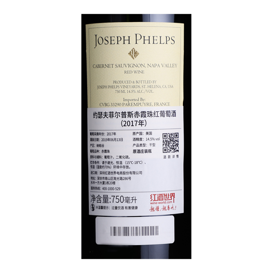 2017年约瑟夫菲尔普斯赤霞珠红葡萄酒