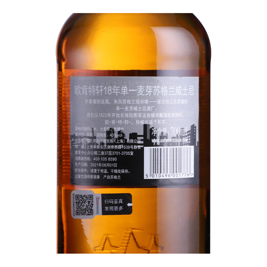 欧肯特轩18年单一麦芽苏格兰威士忌