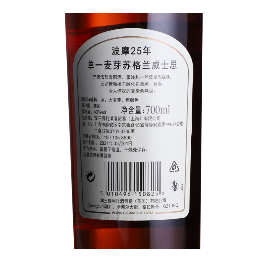 波摩25年单一麦芽苏格兰威士忌