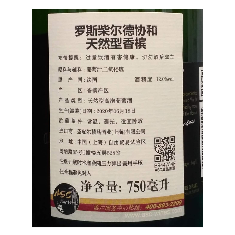 罗斯柴尔德(Rothschild)家族是享誉全球的酿酒名家,是波尔多一级名庄拉菲古堡和木桐酒庄的主人,在其他国家和地区亦坐拥众多名庄。罗斯柴尔德香槟由罗斯柴尔德家族的三个支系——拉菲罗斯柴尔德男爵酒业公司〔Domaines Barons de Rothschild(Lafite)〕、菲利普罗思柴尔德男爵公司(Baron Philippine de Rothschild)和埃德蒙·罗斯柴尔德集团(Baron Edmond de Rothschild)共同创建于2003年。家族在香槟产区建立酒庄的初衷是将积累的酿酒经验与当地风土相结合,打造出能够反映风土的精品香槟。这款酒果香明媚,红色莓果、牡丹、鲜花和果园蔬果的芳香徐徐舒展,酒体适中,酸度明快,架构紧凑,蜂蜜和酥皮糕点的味道久久萦绕。