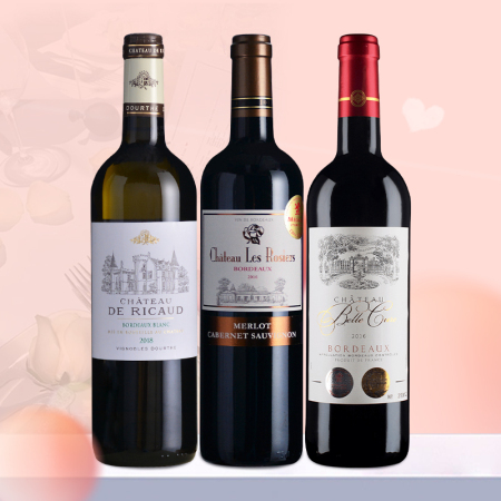 【520浪漫6瓶套装】波尔多精选红&白葡萄酒套装(玲阁堡白+玫瑰城堡红+百俪城堡红)