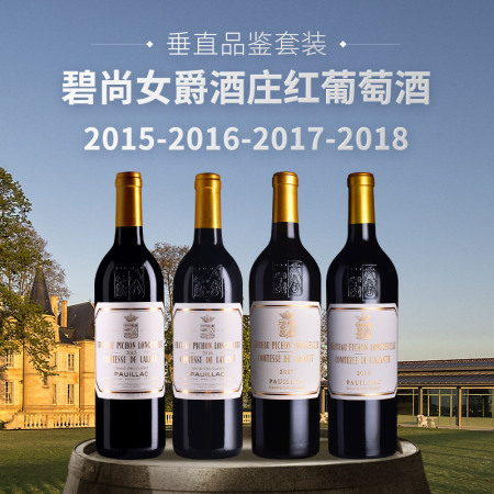 【垂直品鉴套装】碧尚女爵酒庄红葡萄酒(2015-2018年份) 【垂直品鉴套装】碧尚女爵酒庄红葡萄酒(2015-2018年份) 【垂直品鉴套装】碧尚女爵酒庄红葡萄酒(2015-2018年份) 碧尚女爵酒庄1 法国波尔多-波雅克 波尔多红葡萄混酿 品质服务 品质服务