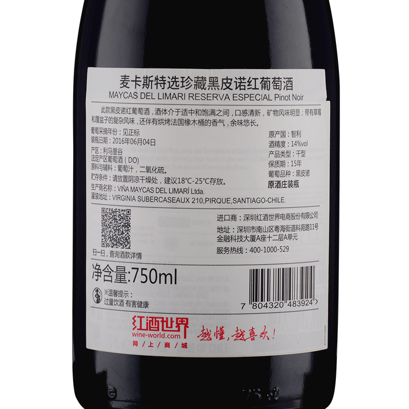 麦卡斯酒庄 智利-利马里谷 黑皮诺 品质服务 品质服务