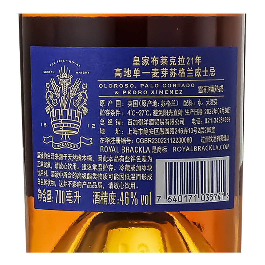 皇家布莱克拉21年高地单一麦芽苏格兰威士忌雪莉桶熟成 高地 品质服务 品质服务