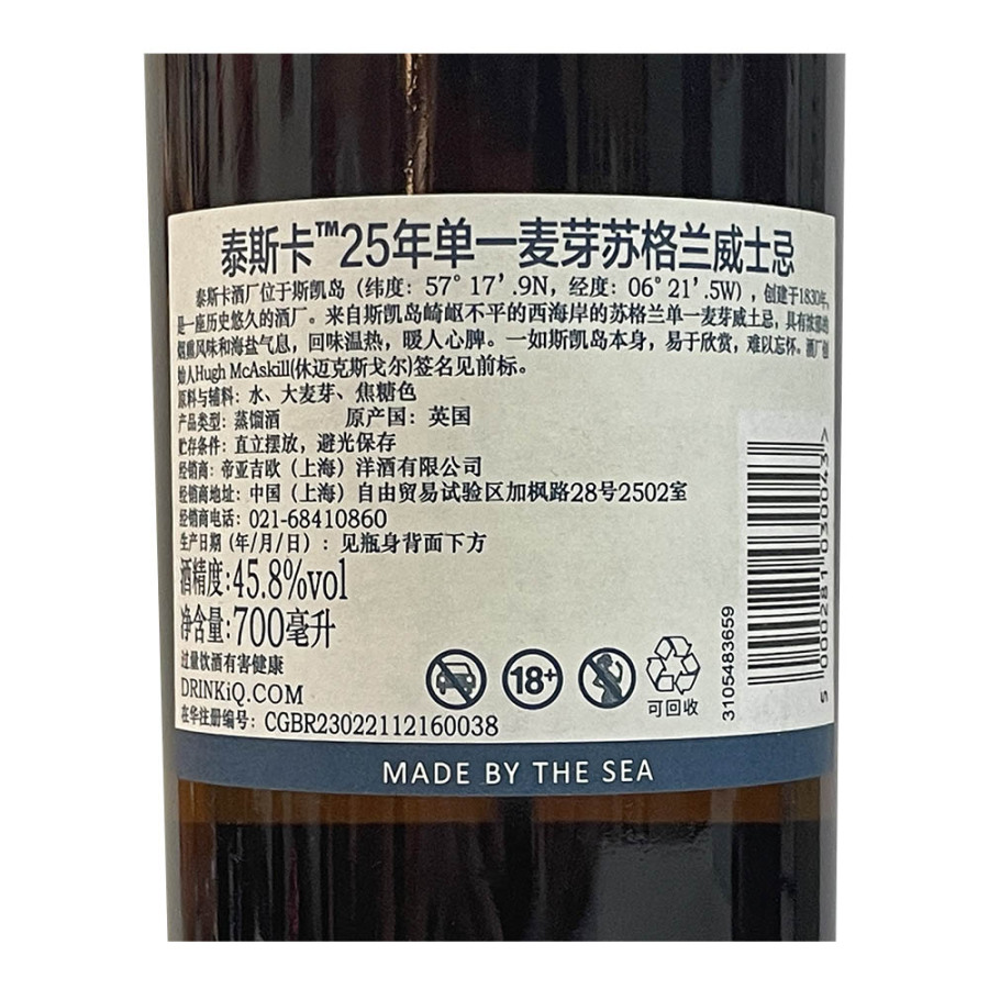 泰斯卡25年单一麦芽苏格兰威士忌 泰斯卡 岛屿区 品质服务 品质服务