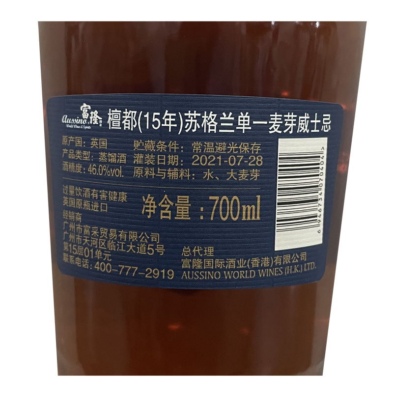 檀都15年苏格兰单一麦芽威士忌 斯佩塞 品质服务 品质服务