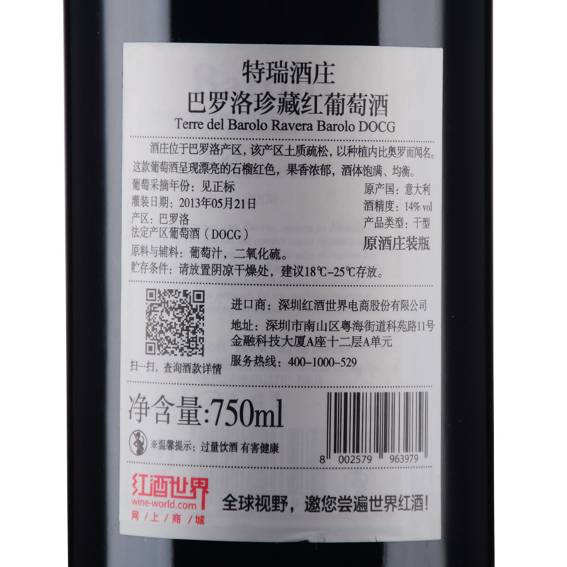 2008年特瑞酒庄巴罗洛珍藏红葡萄酒 (巴罗洛DOCG)