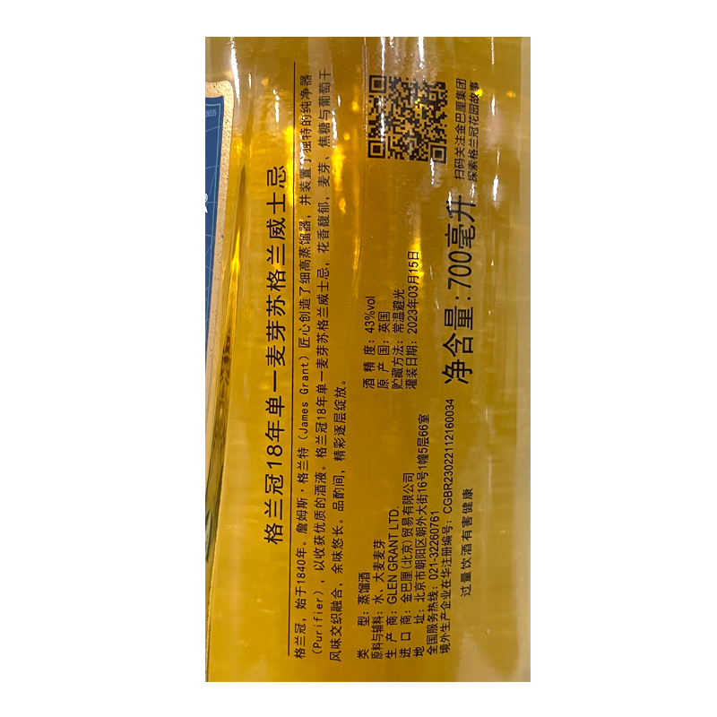 格兰冠18年单一麦芽苏格兰威士忌(700ml)