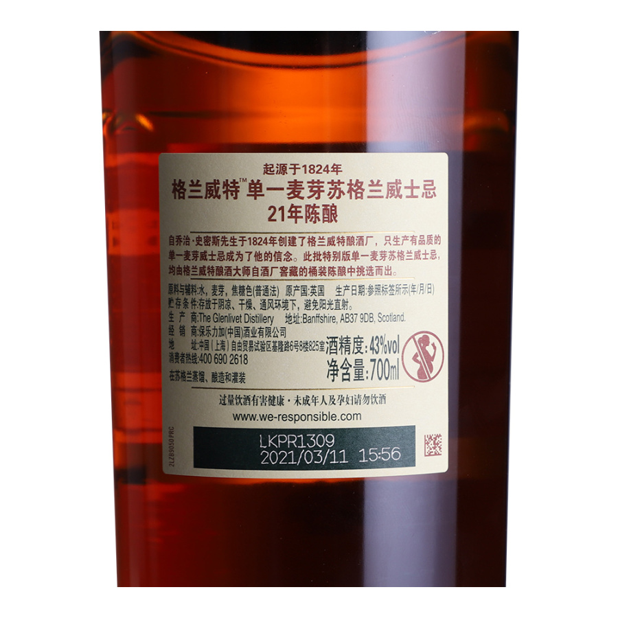 格兰威特21年陈酿单一麦芽苏格兰威士忌